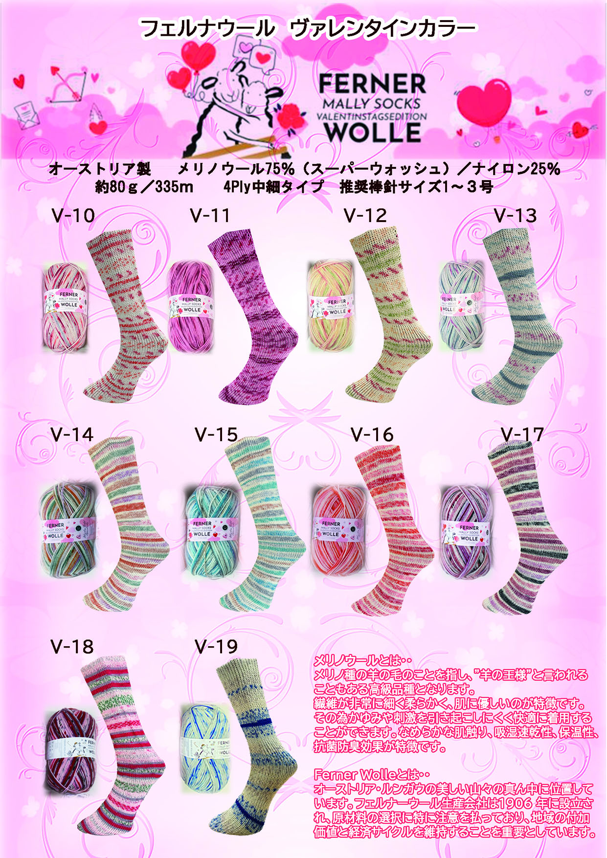 > ソックヤーン メリノウール FernerWolle ヴァレンタインカラー