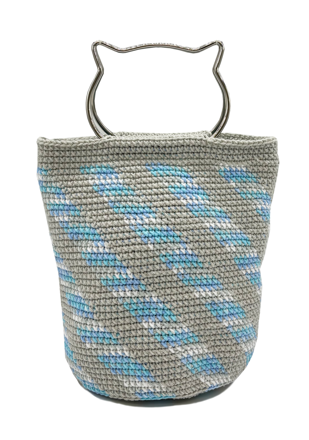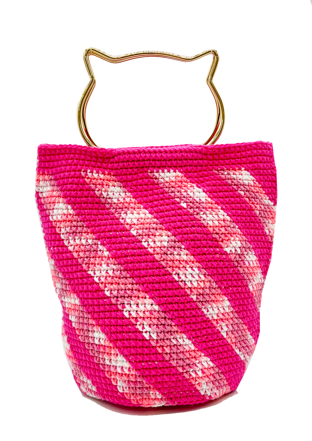 猫持ち手のななめストライプバッグ