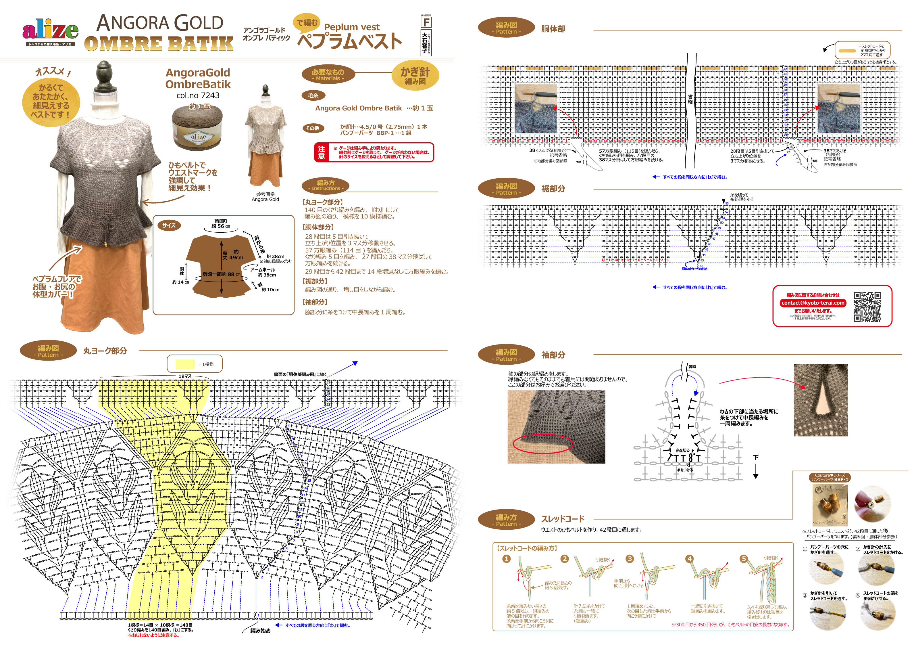 【かぎ針】 ぺプラムベスト の編み図 の編み図